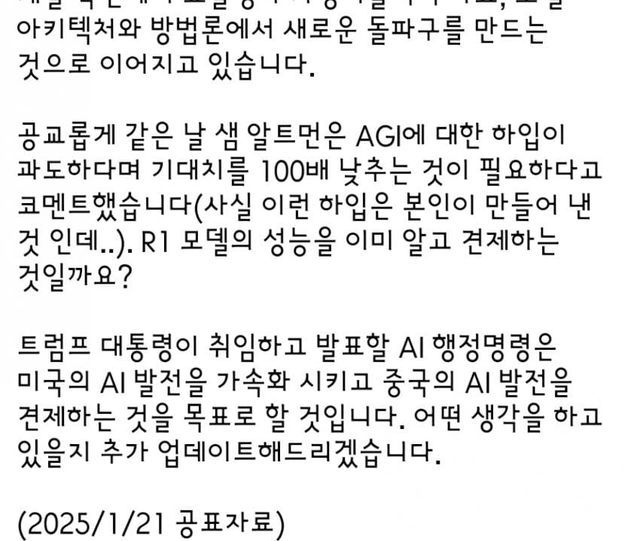 종합하면, 오픈AI는 다른 기업들에게 빠르게 따라잡히고있고, 스타게이트 프로젝트 역시 성공 여부는 미지수.