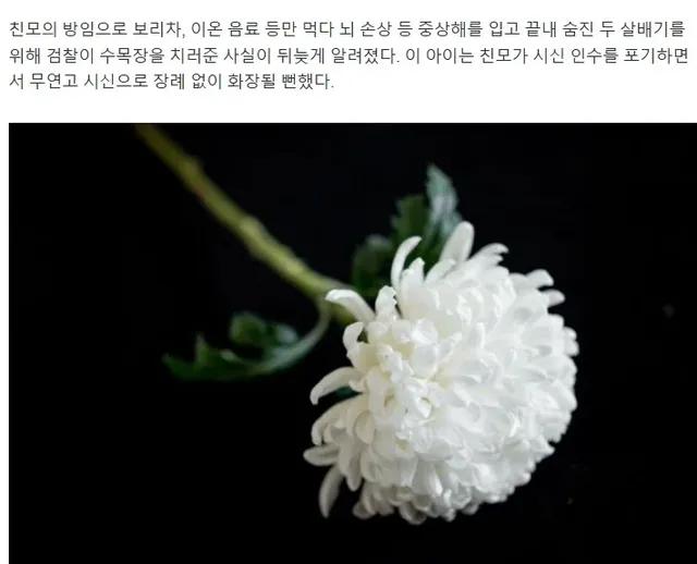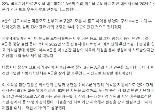 - 무연고 시신이 될뻘 했으나 검찰에서 지원해서 장례를 치워줌