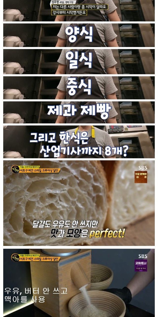 방송 순서대로 1. 송파구 크루아상 – 잠실 비엔블랑 2. 미카엘 달인 – 서초구 크레미엘 3. 서초구 비건 크루아상 – 베이커리 밀리옹 4. 영등포구 허니버터 크루아상 – 필댐굿