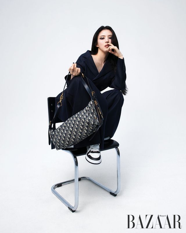 재킷, 톱, 팬츠, ‘디-저니(D-Journey)’ 백, 스니커즈는 모두 Dior.