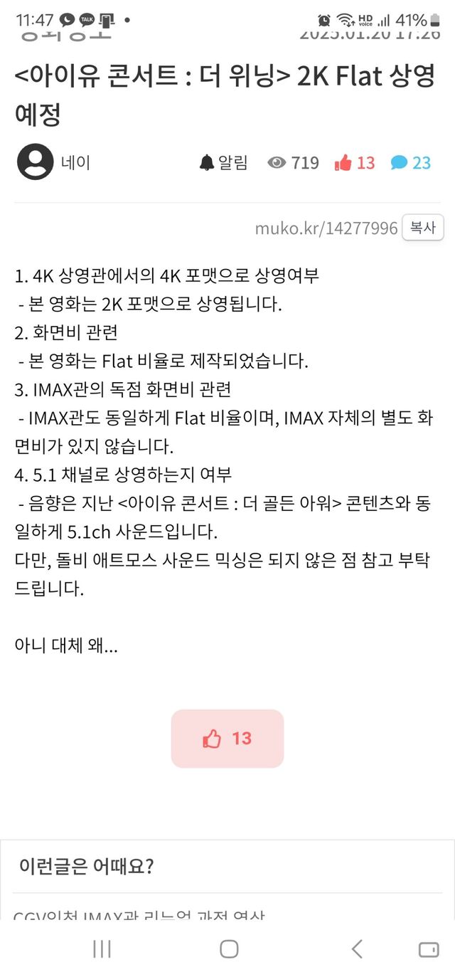 - IMAX관도 동일하게 Flat 비율이며, IMAX 자체의 별도 화면비가 있지 않습니다.