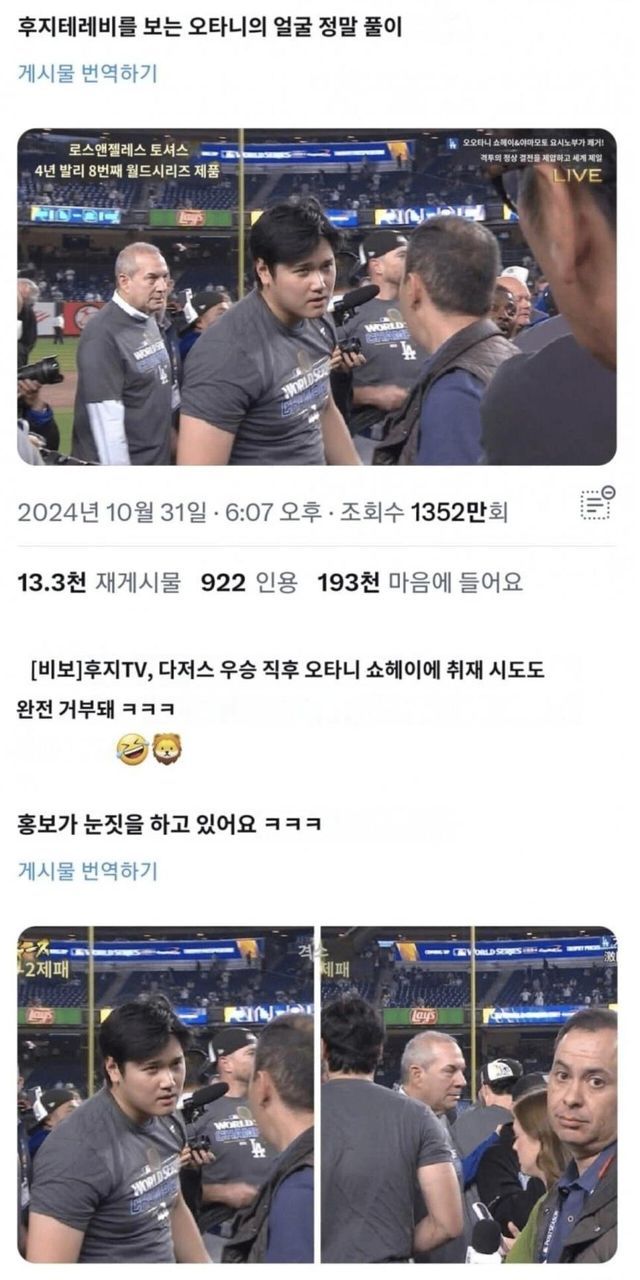 오타니 저리 화난거 첨보네 ㄷㄷ