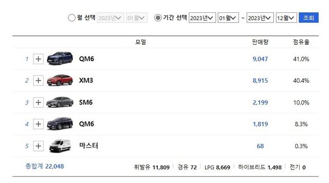도대체 어떤 차가 팔리는가 보면 주력모델은 QM6 와 XM3