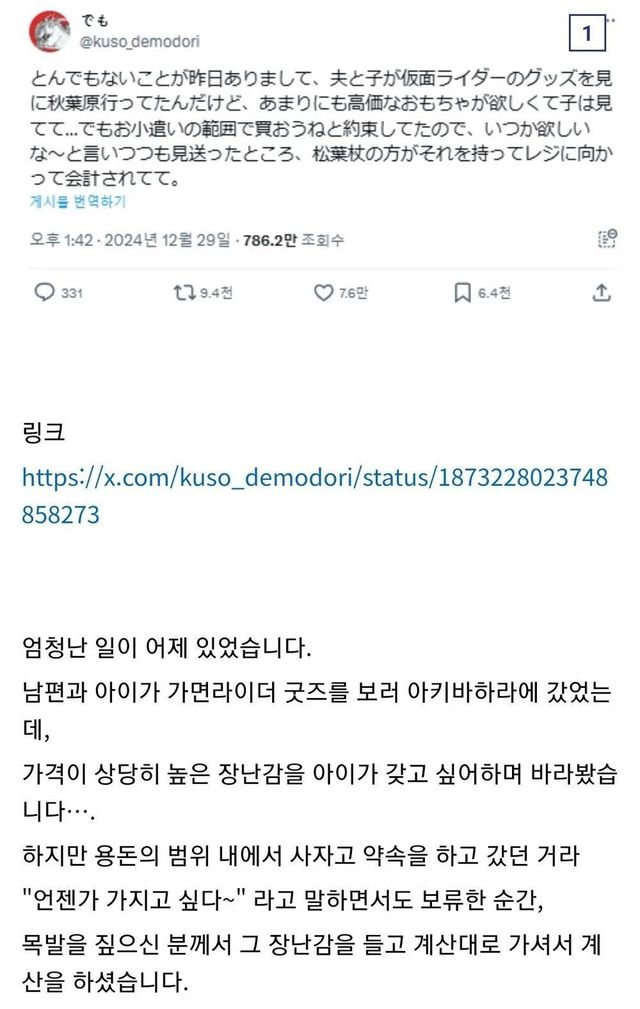 처음 본 한국인이 비싼 장난감을 사줬다는 일본인