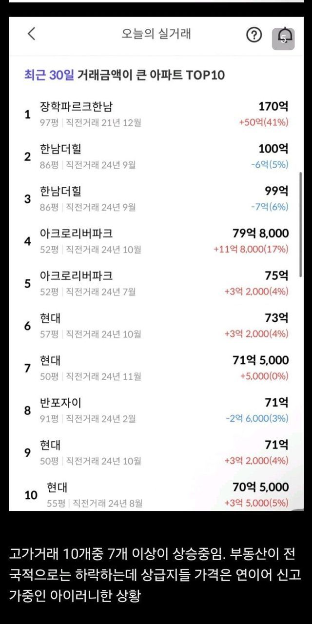 상급지 일부만 계속 거래가 이루어지고