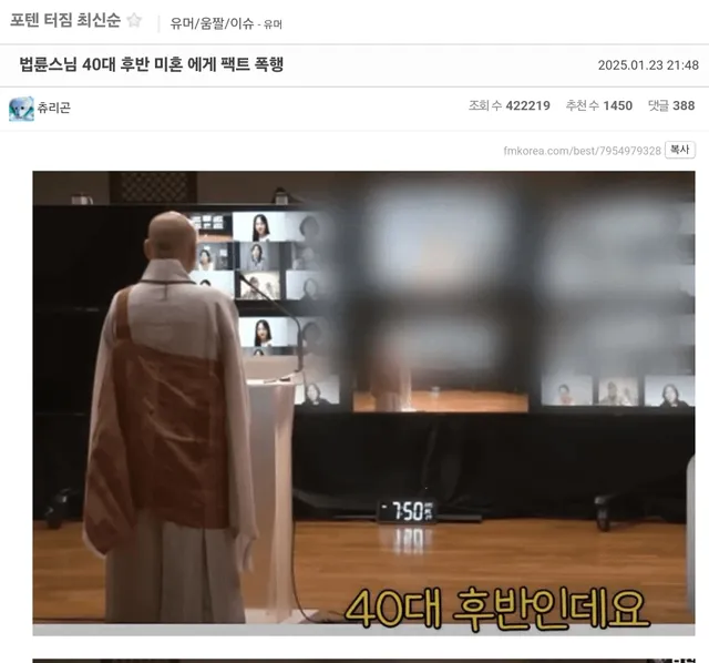 40대 미혼 여성에게 팩트폭격 들어가시는 법륜스님...