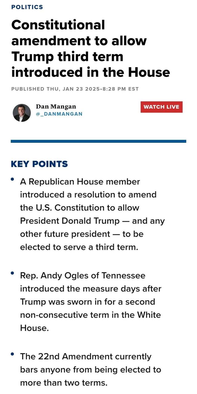 미국 대통령의 연임 제한을 규정한 수정헌법 22조에 대한 개헌안을 국회에 발의함