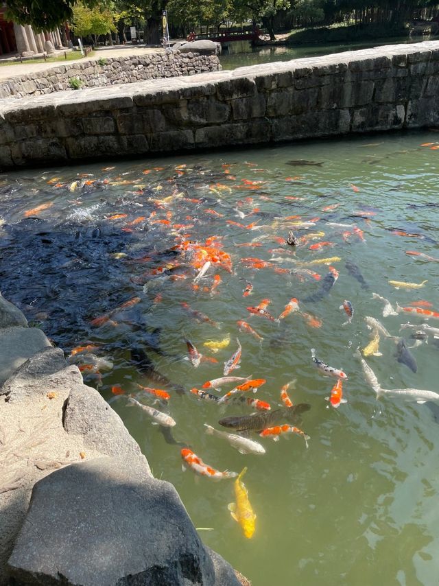 저 연못엔 커다란 잉어들도 많이 살고 밥주기도 할수있음