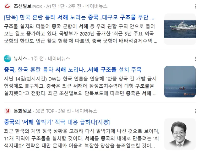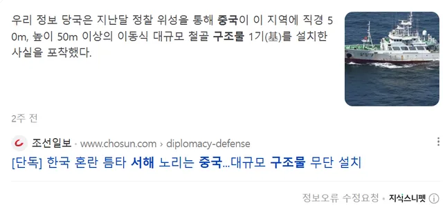 이 개씹쌔끼들은 서해에다가 소리소문없이 구조물 박아놨음