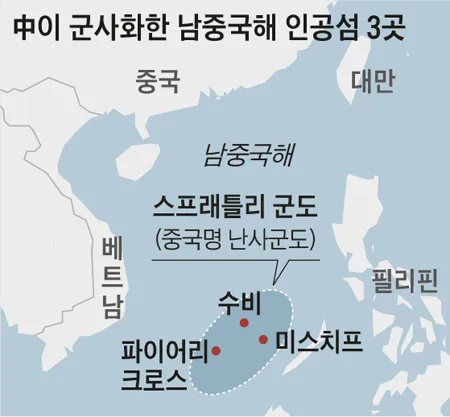 남중국해에는 섬이 3개가 있는데