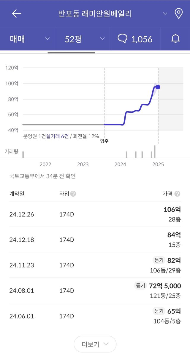 심지어 이번 물건은 국평에 비하면 평당가격이 낮아지는게 보통인 대형평수인데도 평당 2억을 찍음.