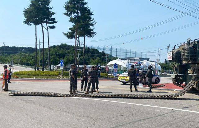 어제 철원군 갈말읍 회전교차로에서 K-9 자주포가 운행 중 궤도이탈..
