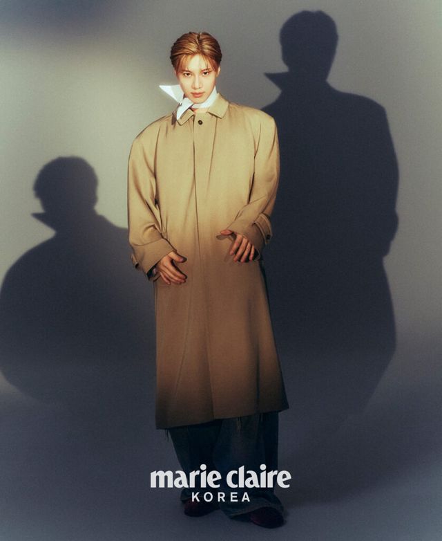 이번 화보에 어떤 색을 써야 할까, 어떤 소품을 더해볼까 한참 고민했는데요. 결론은 빛 하나만을 주제로 정하게 되었어요. 아무런 소품 없이 오롯이 빛과 태민 씨만 존재하는 거죠.