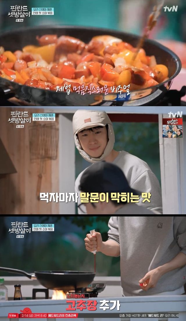 이후 이제훈은 프라이팬에 있는 소세시 야채볶음 재료를 볶다가도 양파나 소세지를 떨어뜨리는 등 어설픈 모습을 계속해서 보였지만 결국 비주얼의 소세지 야채볶음을 만들어냈다.