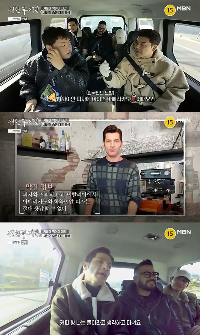 이날 전현무는 "일단 뭐 먹고 싶냐"고 물었고, 곽튜브는 "하와이안 피자에 아메리카노 어떠냐"고 말하며 웃었다. 이탈리아인은 피자와 커피로 유명한 나라로, 이탈리아인들은 하와이안 피자와 아메리카노를 이해하지 못하는 경우가 많다.