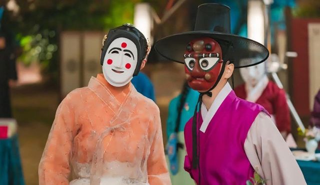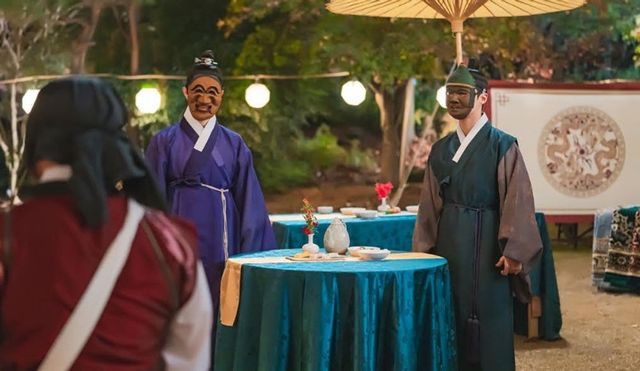 25일 ‘체크인 한양’ 측이 공개한 스틸컷에는 탈을 쓰고 무영군과 도경의 정혼례를 즐기는 사람들이 담겨 있다. 화려한 불빛 아래 익명으로 뒤섞인 사람들 사이에서 무슨 일이 벌어질지 궁금증을 자아낸다.