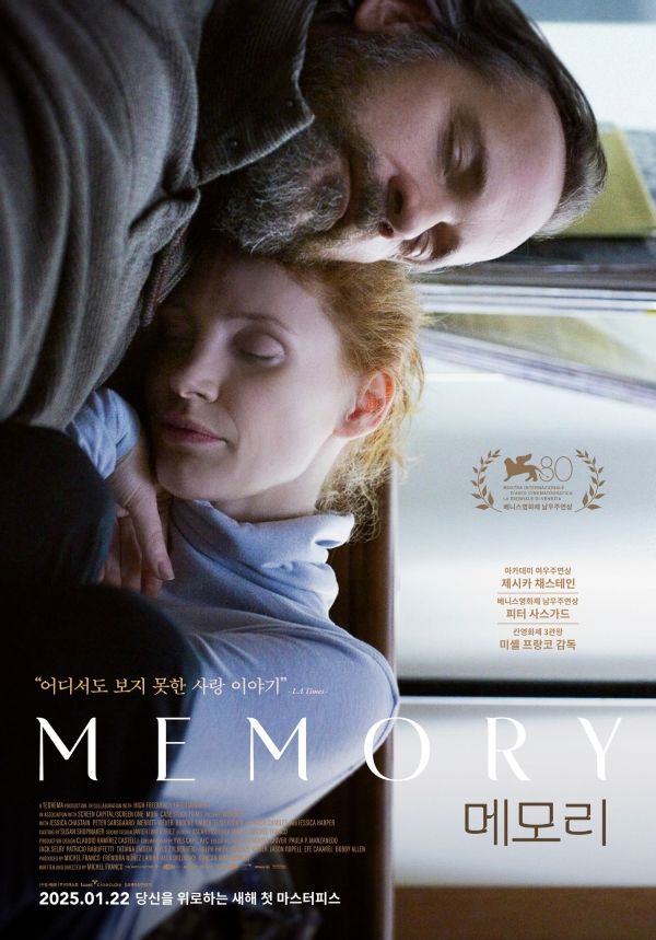 <메모리>를 ‘사랑 이야기’라고만 하기에 아쉬운 건 이 영화가 돌봄과 치유, 가족, 관계, 기억, 트라우마 등 다양하고 중요한 주제를 아우르기 때문이다. 특히 이 영화는 존재의 가치를 위협할 정도로 중대하지만 우리의 삶과 맞닿아있는 주제―즉 노화에 따른 흔한 질병인 치매와 잊을 수 없는 어린 시절의 트라우마―를 전면에 내세움으로써 관객이 당사자가 되어 함께 아파하고 질문할 수 있게 한다. 기억을 잃어간다는 건 어떤 느낌일까? 트라우마가 된 기억을 가장 가깝다고 생각한 가족에게 고백했는데 믿어주지 않는다면? 서로의 취약한 모습도 내보일 수 있는 관계라면 혈연으로 이어진 가족보다 더 깊은 관계라고 할 수 있지 않나? 그런 관계 안에서 드디어 우리는 우리 자신으로서, 있는 그대로 존재할 수 있는 게 아닐까?