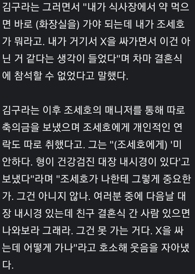 김구라가 조세호결혼식 불참한 이유