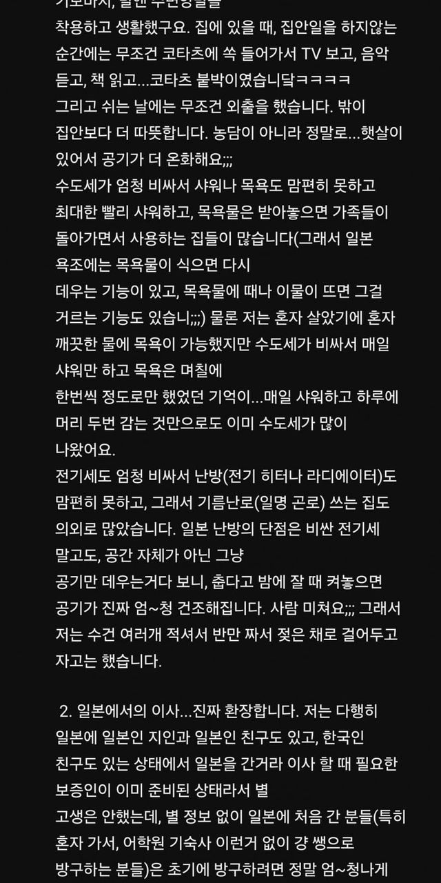 윗 내용에 추가로 일본은 전기세, 수도세도 한국보다 훨씬 비쌈.