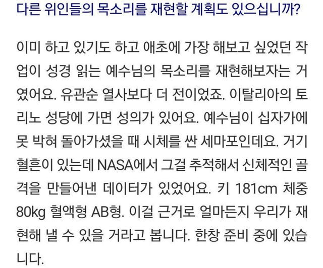 최전성기 시절에는 2000년 전 ‘예수’ 목소리 재현 시도 중이라고 함 ㄷㄷㄷ