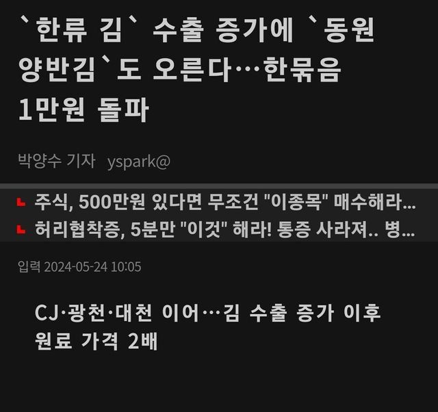 결국 김 가격이 계속 비싸질거라 한국 사람들 큰일남.