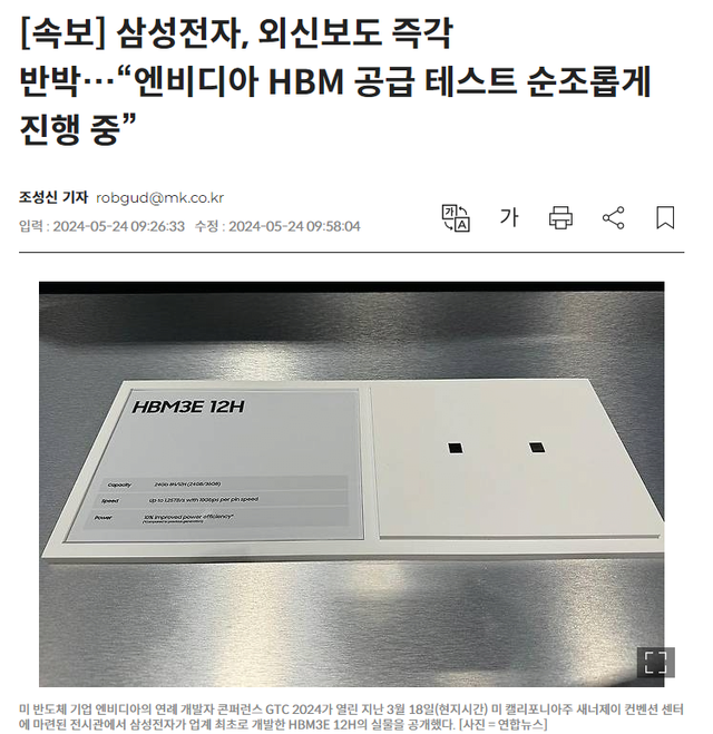어제 엔비디어 어닝 발표때 삼성전자는 엔비디아로부터 계약 소식을 듣지 못했고,