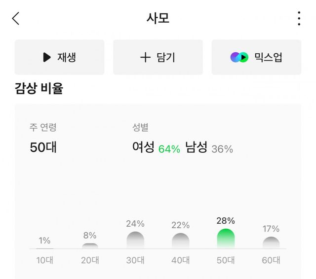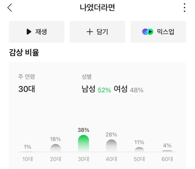 최근곡 감상비율 50대로 바뀜