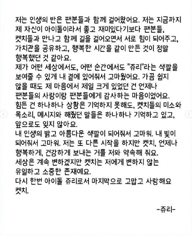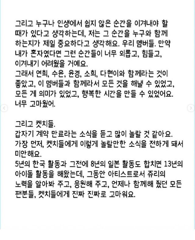계약 기간 종료로 갑작스럽게 탈퇴 선언한 여자 아이돌