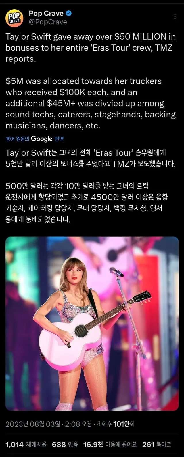 미국에서 테일러 스위프트를 넘사벽이라고 하는 이유