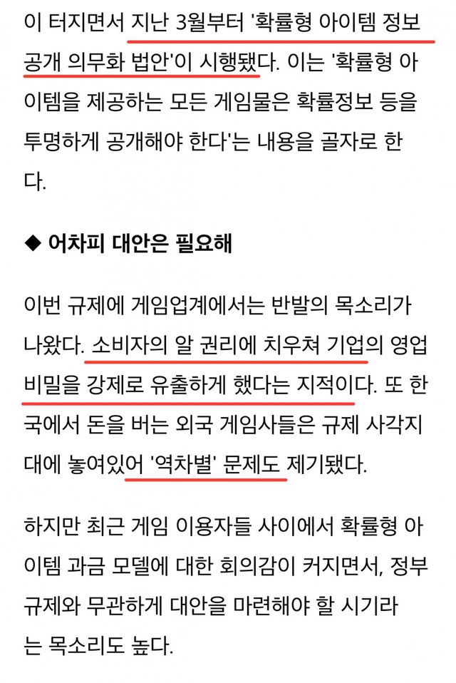 확률형 아이템 확률공개는 소비자 권리에 치우쳐