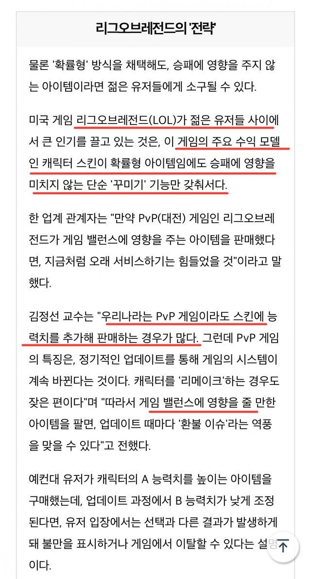 롤은 확률형 아이템이지만 게임에 영향이 1도 없고