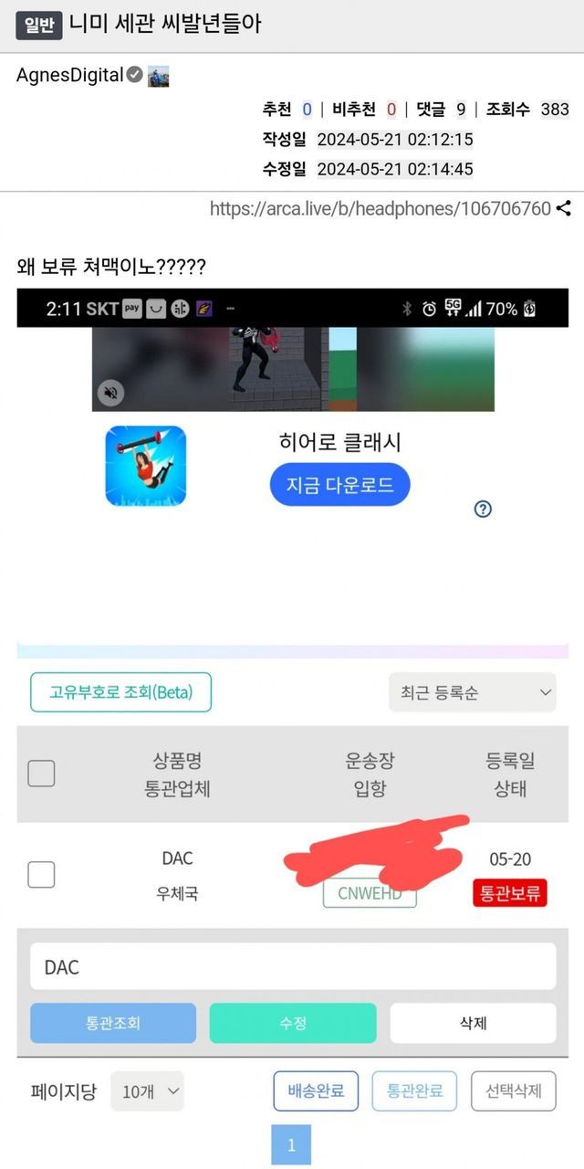 아무리 통관이 밀려도 거부나 실패가 뜨진 않는다는걸