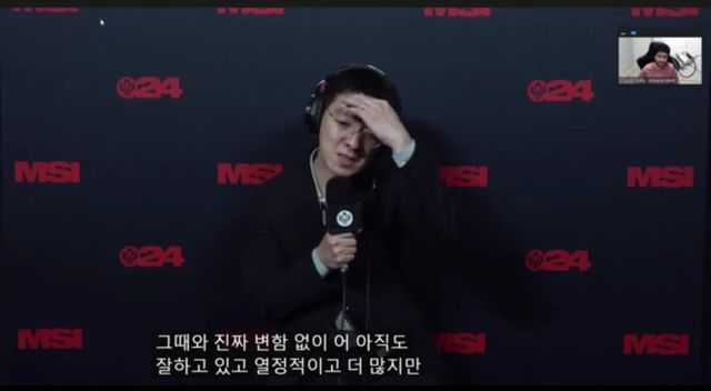 A : 페이커 선수가 굉장히 대단한 부분이 많지만 어.. 그때와 진짜 변함없이 어.. 아직도 잘하고 있고 열정적이고 더 많지만 어.. 그냥 좋은 쪽으로 이제 변한 게 아예 없다고 생각하고 있고..