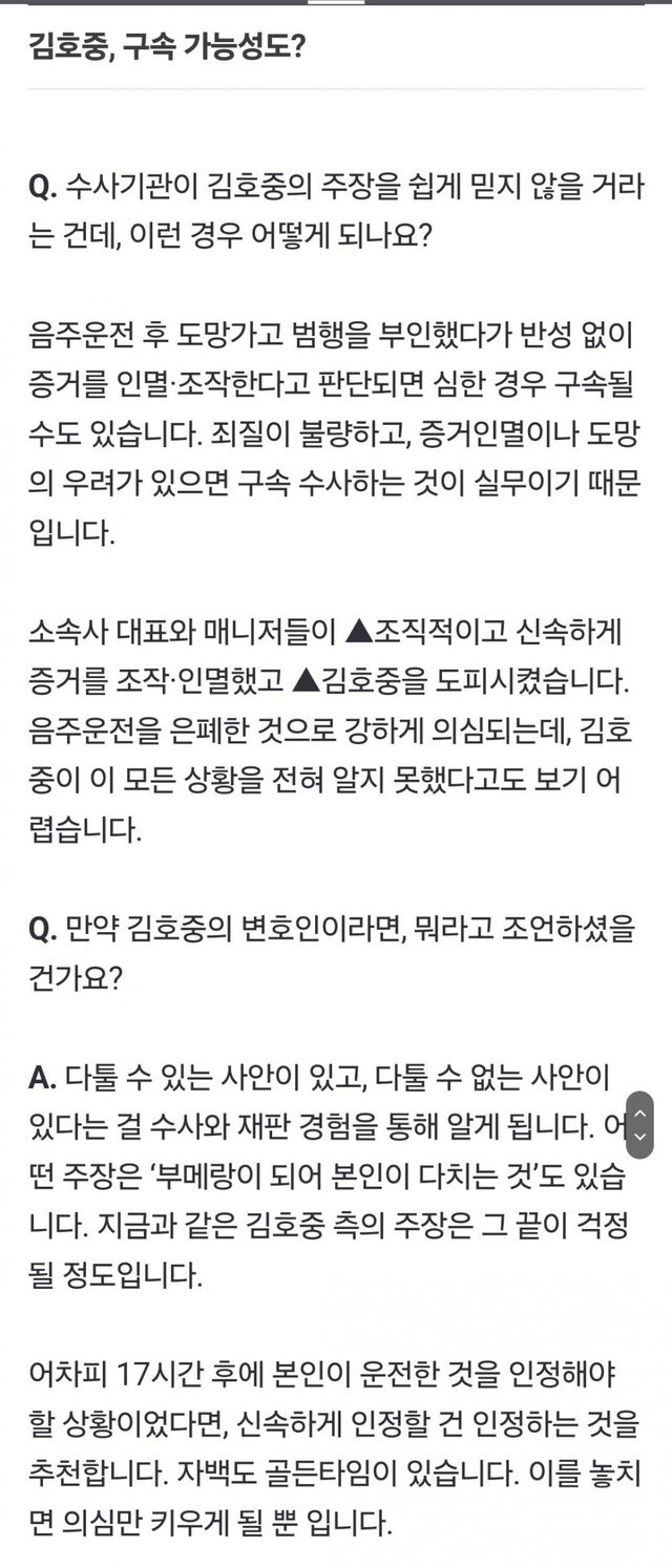 죄질도 나빠서 구속 될수도 있다고 변호사들이 조언한듯