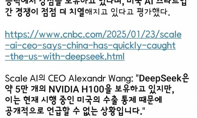 만약 미국 빅테크들 중 몇 군데가 AI SW에서 혁신을 못하고 이전처럼 칩 수로만 밀어붙인다면 비용 대비 효율 면에서 박살나면서 결국엔 비주류화 될 것.