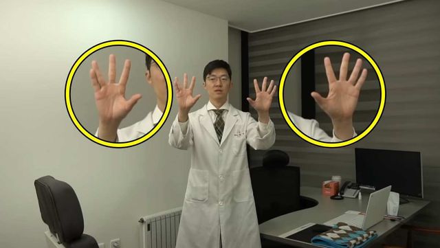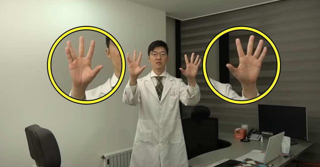 1. 약지와 새끼손가락을 엄지로 잡고 검지와 중지만 펴준다.