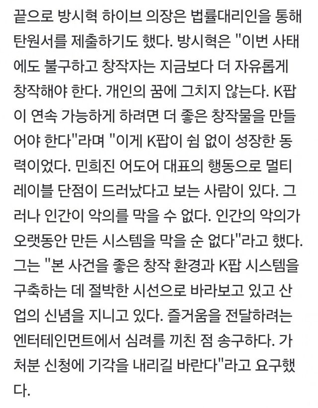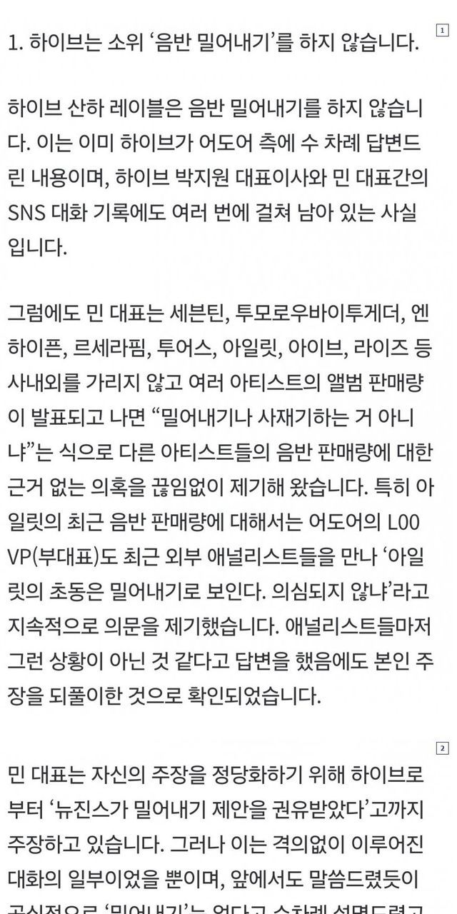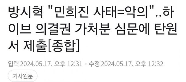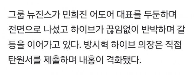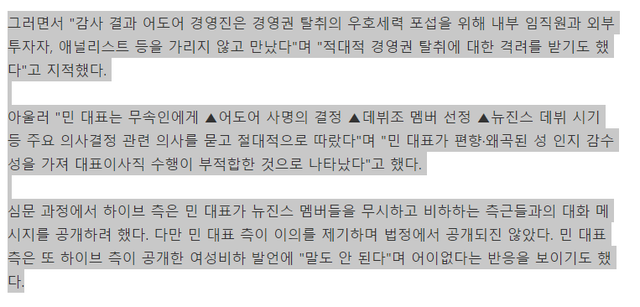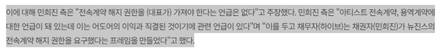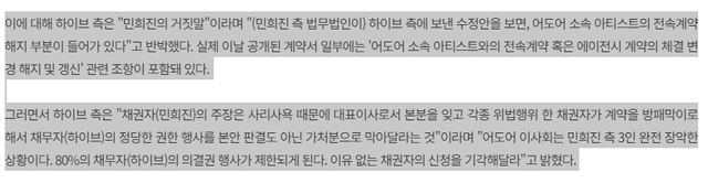 하이브가 내세운것 : 무당이 내부인사개입,경영개입한 증거 , 전속 계약해지권 요구한 증거 , 네이버두나무 접촉한 증거