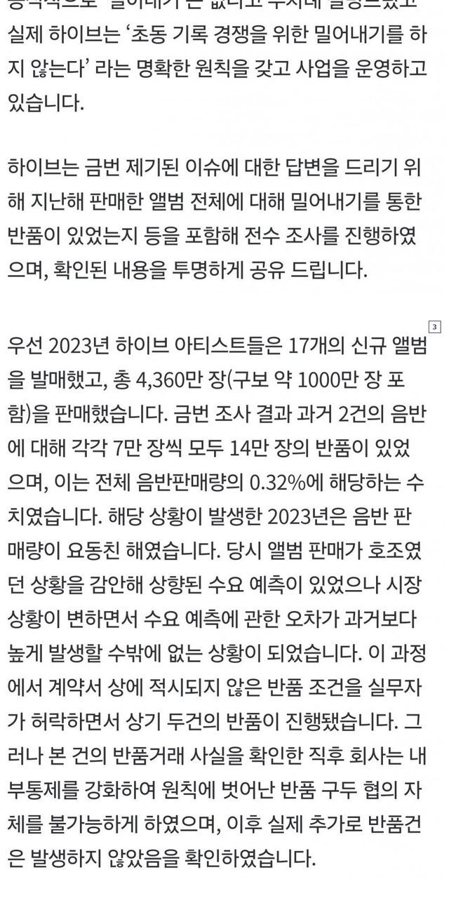 브랜드시너지사업팀은 어도어, 쏘스뮤직 각 레이블을 모두 공평하게 대하는 것이 당연합니다. 그러나 브랜드시너지사업팀은 특정한 아티스트에 편향된 업무처리를 하였고, 그러한 정황이 밝혀지고 나서야 어도어의 항의를 수용하여 3개월 치 에이전시 수수료를 반환하면서 계약을 마무리할 수 있었습니다.