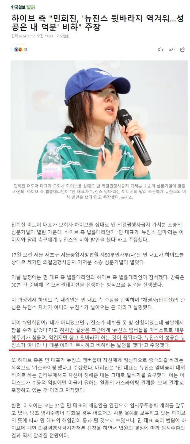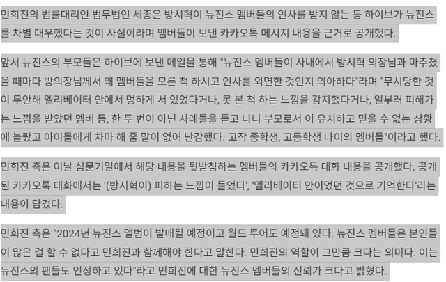 민희진측(민희진불참) 이 내세운것 : 뉴진스가 나랑 함께하고싶어해요 , 방시혁이 뉴진스애들피했어요