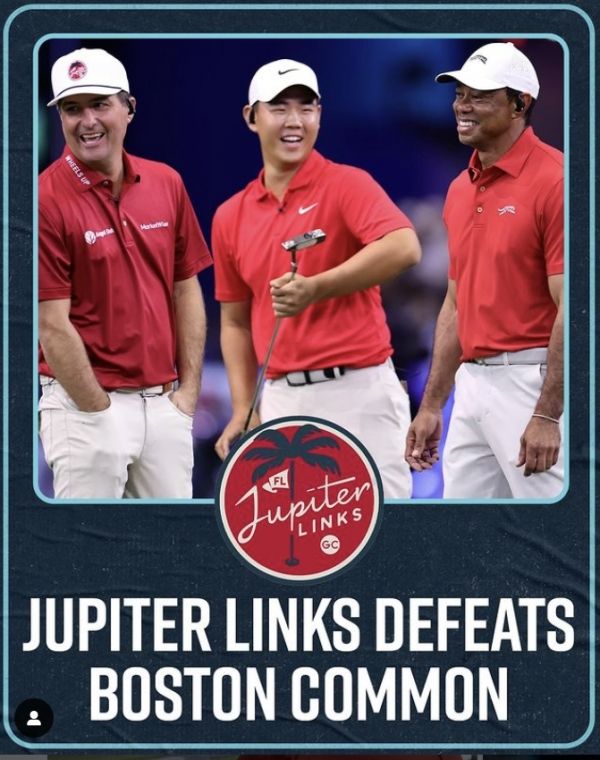 김주형과 '골프지존' 타이거 우즈(미국), 케빈 키스너(미국)가 한팀인 주피터 링크스 골프클럽이 보스턴 커먼 골프클럽을 맞아 첫 우승을 거뒀다. 짜릿한 연장전 우승이다.