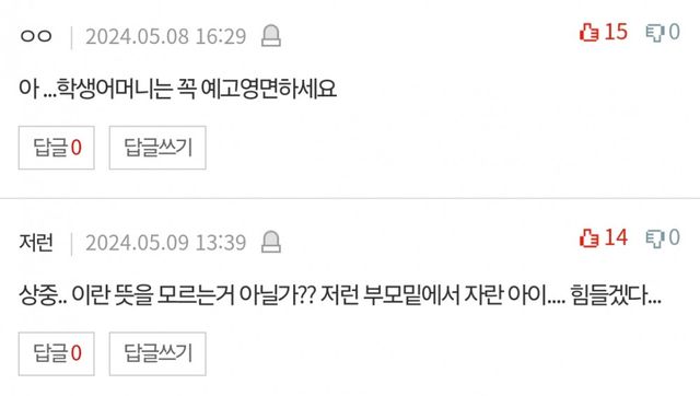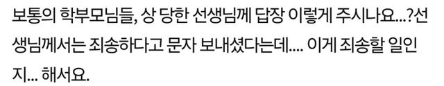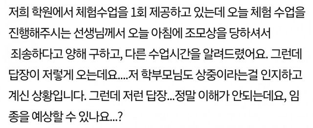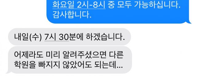 상을 당해서 수업을 미뤘으면 한다는 문자에 학부모 답장