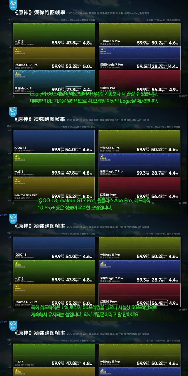 - 원신 (프레임/하위1% 프레임/소비전력)