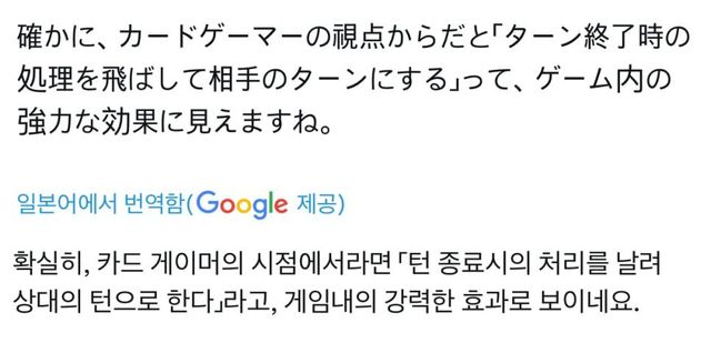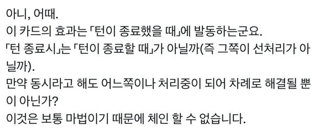 [자신의 턴이 종료됐을 때, 상대의 턴이 된다.]는 고이즈미 신지로식 개그 카드를 누군가가 올렸는데