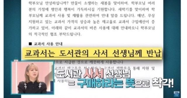 도서관 사서 선생님께 반납하라는 가정통신문을 보고 ‘구매해서’ 반납했다고 이해하는 사람들도 있다고 함