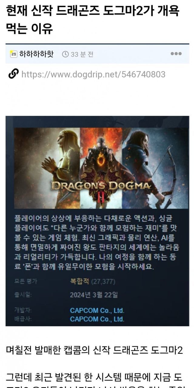 드래곤즈 도그마2가 욕먹는 이유 ㄷㄷ