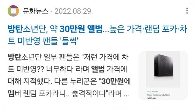 같은 모회사 하이브 소속인 방탄소년단도 30만원짜리 앨범 낸적있어서