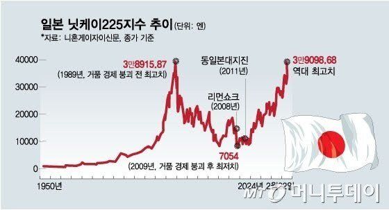 일본 증시도 35년만의 역대 최고치 찍음