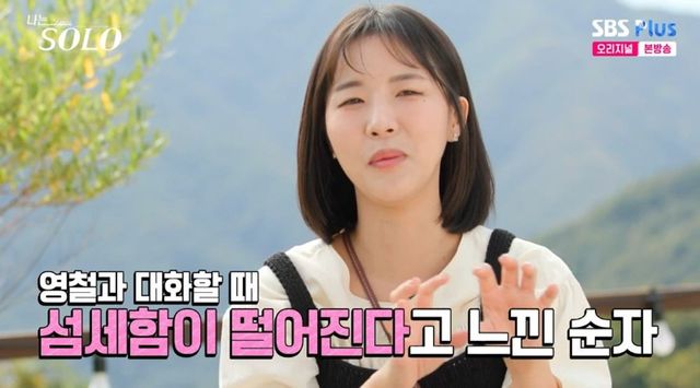 이날 순자는 광수와도 핑크빛 기류를 나눴다. 순자는 “영철과 매력이 있고 즐거웠지만 광수와의 대화가 더 편안했다. 체식 얘기만 해도 영철의 질문은 투박하더라. 그런 면에서 광수가 더 섬세하고 편안하고 설렜다”며 광수를 향한 호감을 전했다.