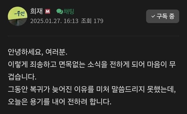 스트리머 소풍왔니 지인들과 릴레이 방송으로 도와줄 예정