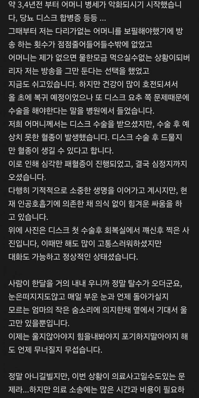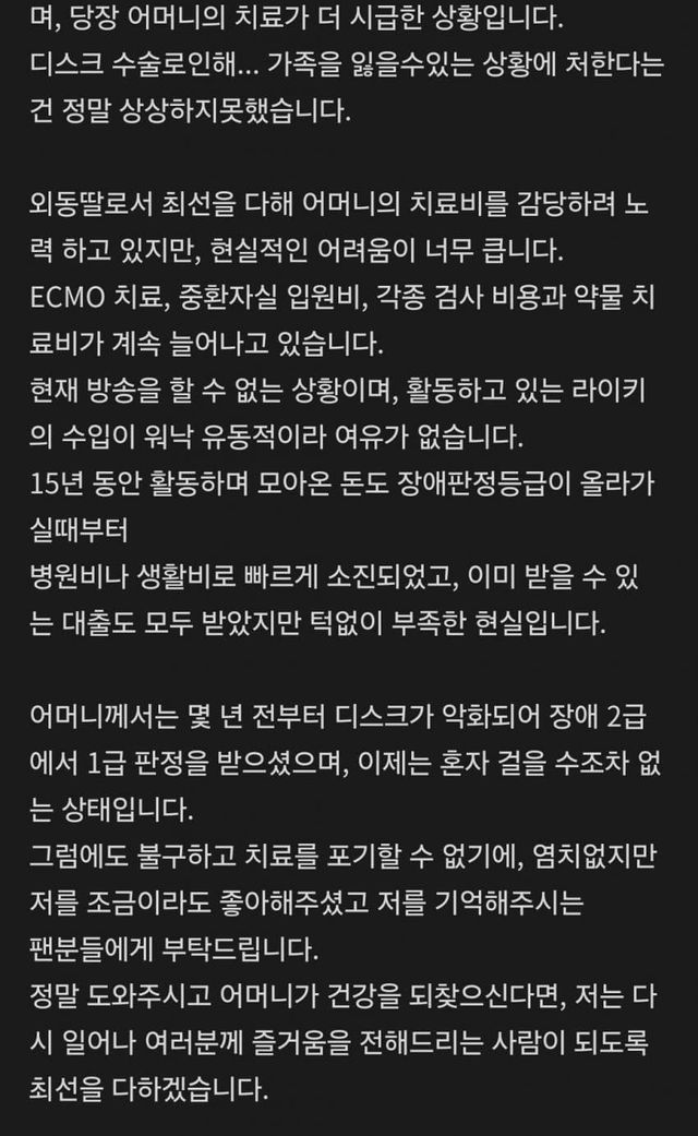 어머니 병원비가 감당 안 되는 상황까지 옴 (대출까지..)